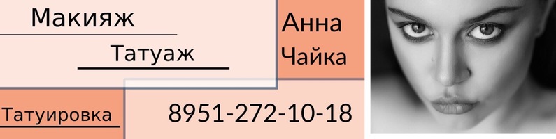Здравствуйте! Рада приветствовать всех в моей группе красоты! Меня зовут Анна. Я мастер макияжа ,татуажа и татуировки. В профессии с 2014 года. В макияже и татуаже обожаю натуральный эффект. Легкие и воздушные бровки, легкий макияж подчеркивающий вашу красоту, а не переделывающий лицо в маску. Люблю работать со сложными и возрастными лицами. В тату предпочитаю минимализм и лайн ворк, есть в них какой то шарм =) Телефон и Viber , WhatsApp , Telegram 8 951-272-10-18