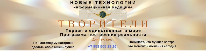 Человеку свойственно мечтать! И каждый из Вас мечтает: - Повысить свою самооценку и уверенность, - Встретить любимого человека и не ошибиться в выборе, - Быть уверенным, что идет правильным путем и достигнет цели, - Найти ресурсы для решения давних задач: сбросить вес, пойти учиться, закончить незавершенные дела и т.д. - Легко гармонизировать взаимоотношения с близкими людьми - Забыть о финансовом недостатке, открыть дополнительные источники дохода - Заниматься творчеством. И чтобы взмахнуть «ВОЛШЕБНОЙ ПАЛОЧКОЙ» и все готово! Теперь у Вас есть такая возможность! Компания «Центр Регион» представляет первую и единственную в Мире государственную программу построения реальности «ТВОРИТЕЛИ». Применяя программу «ТВОРИТЕЛИ», Вы: - Повысите уверенность в себе, концентрацию внимания и способность к обучению - Расширите границы своего сознания и способность создавать благоприятные события - Начнете создавать гармоничные взаимоотношения - Станете лучше чувствовать свой организм истинные потребности своего тела, - Раскроете свои творческие способности - Начнете легче проявлять свою индивидуальность - Научитесь обходить воздействия, формирующие ложные желания и мотивацию Все, что Вам нужно для пользования Программой: - Компьютер, ноутбук, планшет или смартфон - Доступ в интернет - От 7-8 минут ежедневно ЭТА ПРОГРАММА СПОСОБНА ИЗМЕНИТЬ ВАШУ ЖИЗНЬ НАВСЕГДА, СОХРАНИВ В НЕЙ ВСЁ САМОЕ ЛУЧШЕЕ, УБРАВ ИЗ НЕЁ ВСЁ ПЛОХОЕ И ПОСТРОИВ ДЛЯ ВАС РЕАЛЬНОСТЬ НОВОГО КАЧЕСТВА – ВАШУ ИНДИВИДУАЛЬНУЮ ВСЕЛЕННУЮ – ВНУТРИ ВАС И ВОКРУГ ВАС! _________________________________________________________________ PS: Приглашаю Вас на БЕСПЛАТНУЮ 15 минутную консультацию. Мы с Вами разберем, и обсудим темы, с которыми необходимо поработать, получите рекомендации и дополнительные советы, для качественного получения результата. _________________________________________________________________________ Акция!!! Для тех, кто оформляет подписку на программу ТВОРИТЕЛИ из этой группы – БЕСПЛАТНОЕ обследование здоровья на комплексе «Оберон» .(г. Вологда) _________________________________________________________________ Запись на Бесплатную консультацию пишите в личное сообщение группы ссылка: https://vk.com/sami_tvoriteli или Viber I WA I +7 953 505 18 26